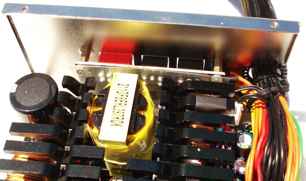 Una vez transformada la corriente alterna en continua, a través del cableado se suelda a la placa trasera de los conectores del panel delantero. Esta es la parte final del paso de corriente alterna de 230V a 6A a 50Hz a la corriente continua con las tensiones que ya conocemos, de 3.3V, 5V y 12V entre otros, con intensidades de hasta 22-24A. Todo ello de la forma mas silenciosa posible.