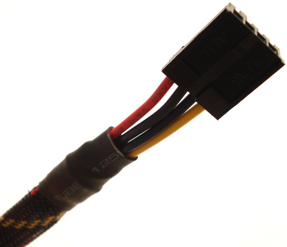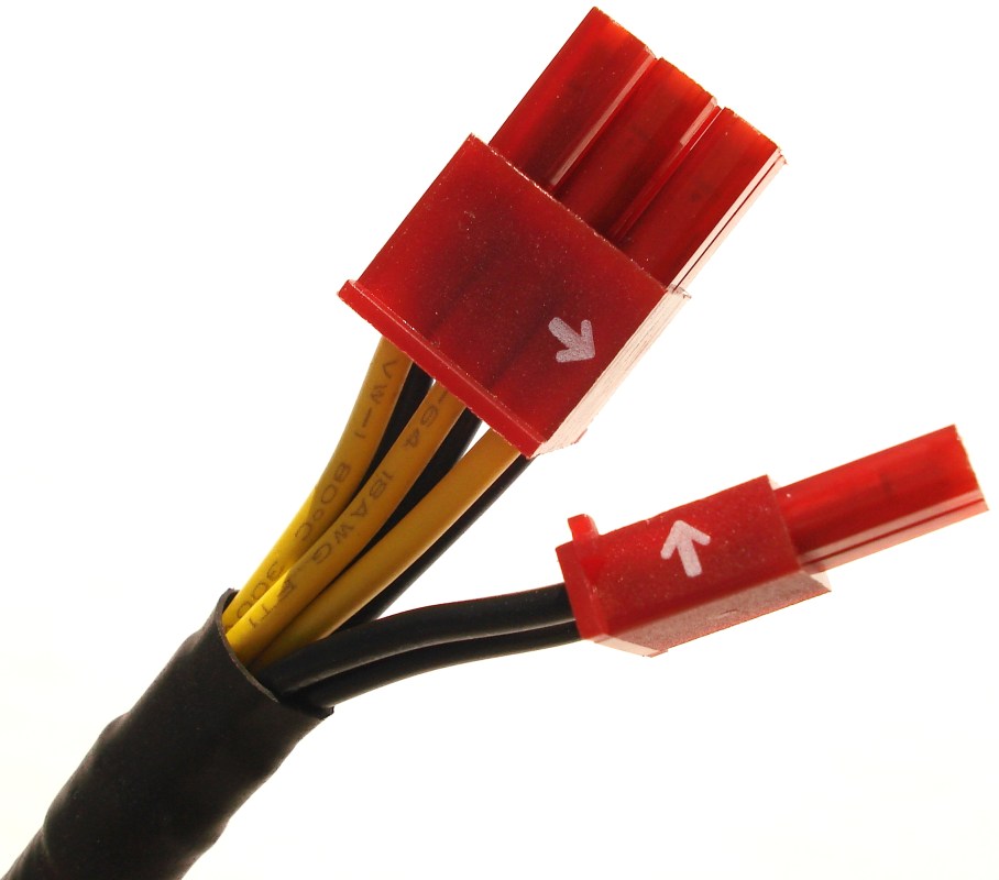 Se emplea el color rojo para identificar fácilmente los molex correspondientes PCIe y el negro para el resto. Los molex de 4 pines están diseñados para fácilmente poder ser desconectados, presionando en ellos con los 2 dedos de la mano.