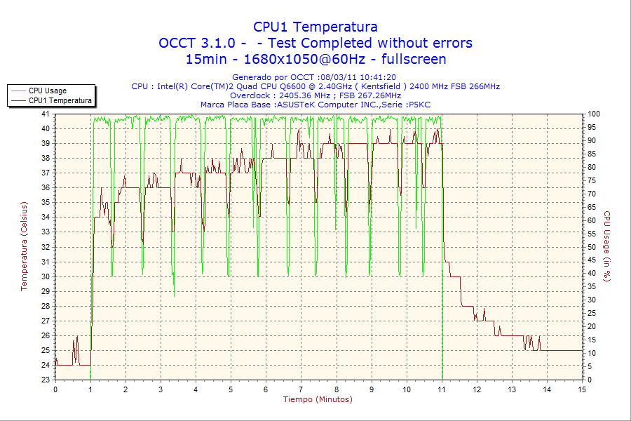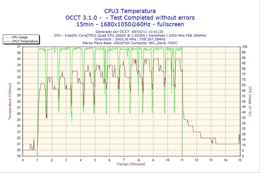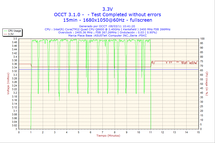 - Test de estabilidad de tensiones de salida con el sofware OCCT v3.1.0.