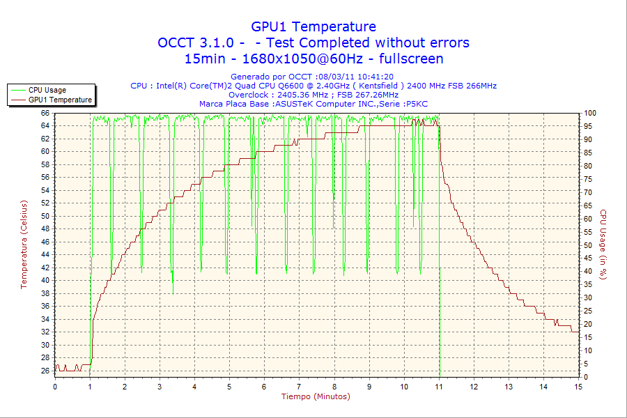 - Carga alta: PC realizando el test de carga elevada correspondiente al «Power Supply» del software OCCT.