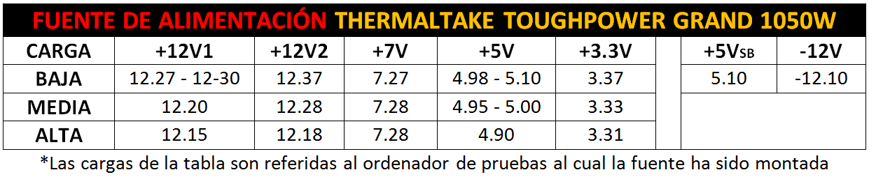 THERMALTAKE TOUGHPOWER GRAND 1050W. Tabla de Tensiones