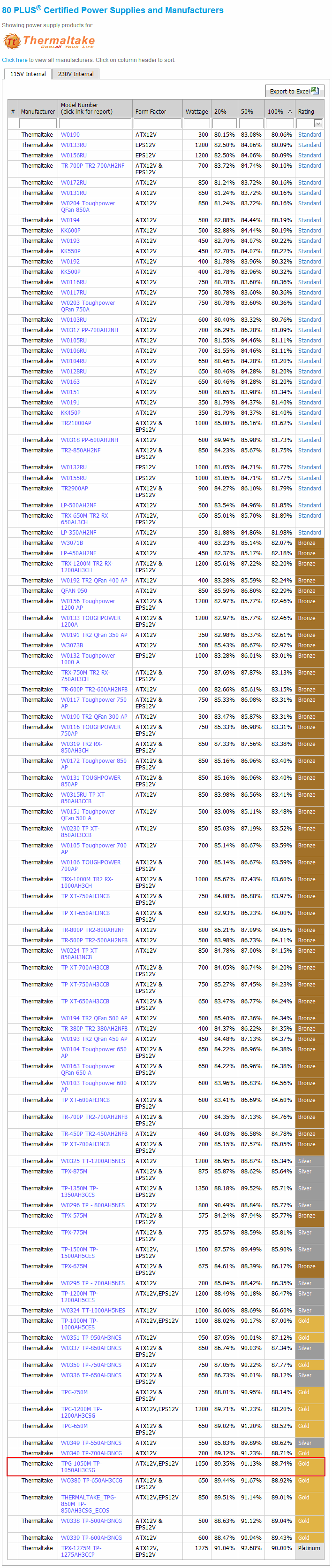 THERMALTAKE TOUGHPOWER GRAND 1050W. Tabla Comparativa 80Plus Fuentes Thermaltake
