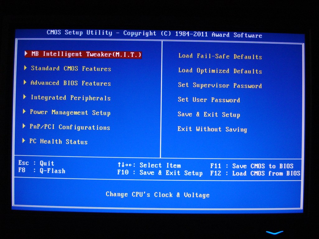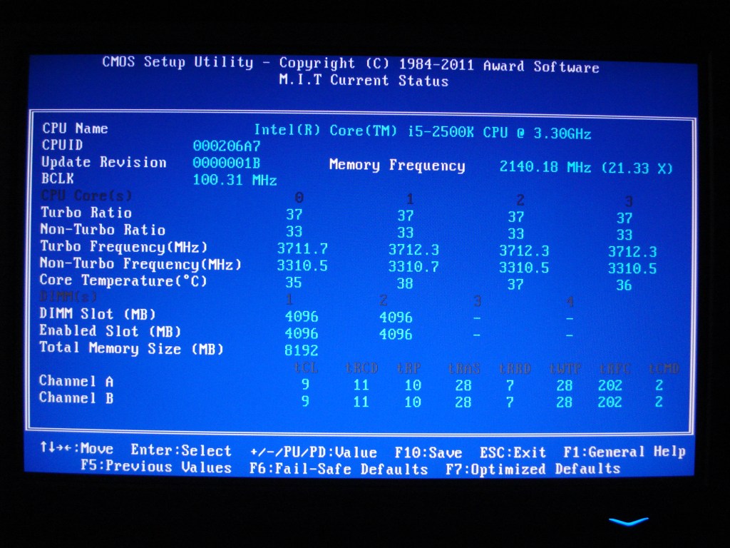 GIGABYTE GA-Z68X-UD4-B3. Award BIOS versión E1 (F9B). M.I.T. Current Status