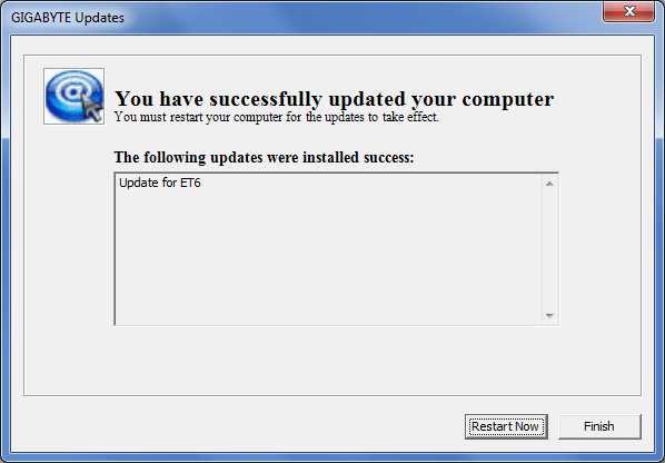 Siempre que instalamos un programa nuevo, solemos comprobar si tiene alguna actualización disponible online. Así que, tras instalar el programa EasyTune6 y tras el reinicio obligado, pinchamos otra vez en el icono «@» de la utilidad para realizar tal comprobación. Y efectivamente, vemos como Gigabyte hace sus deberes dando soporte continuado a su software, con el resultado de una actualización de varias librerías .dll que acompañan al propio ejecutable de la utilidad. Tras otro reinicio del S.O. obligado, ya podemos manejar la utilidad con toda solvencia.