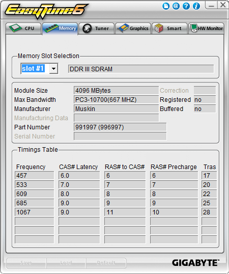 GIGABYTE GA-Z68X-UD4-B3. Utilidad Gigabyte EasyTune6. Sección Memory