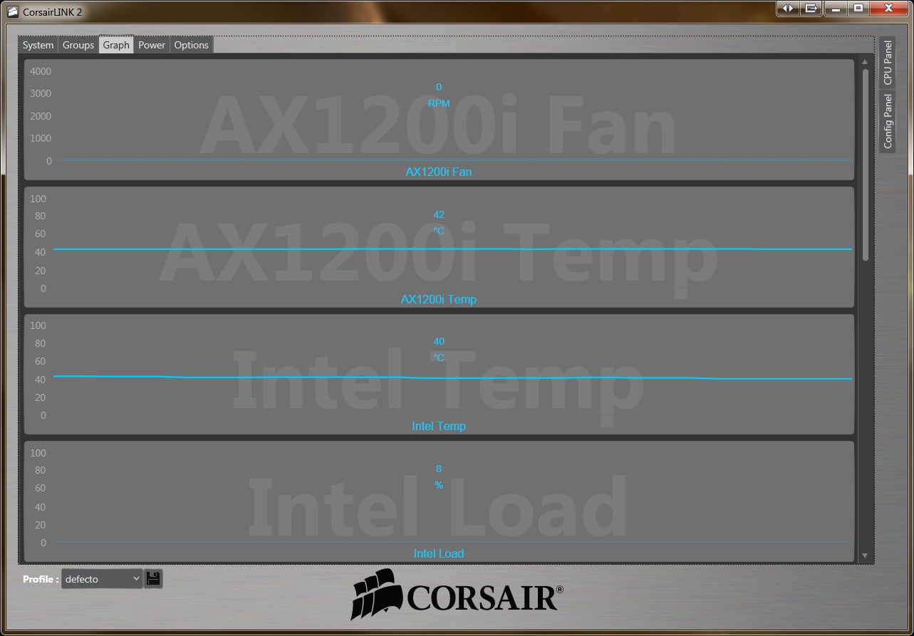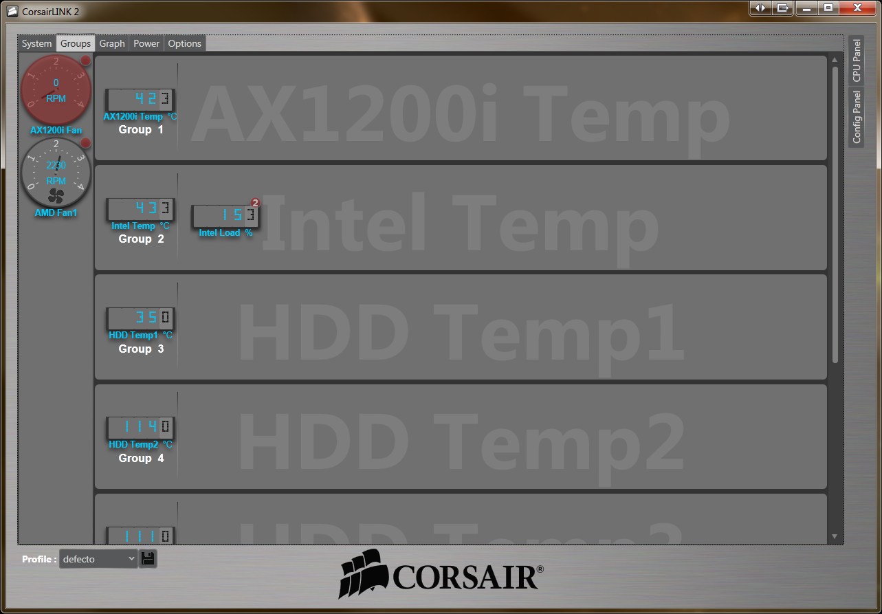 CORSAIR AX1200I. Captura Software Corsair Link 2 v2.0.15 Beta. Sección de «Groups»