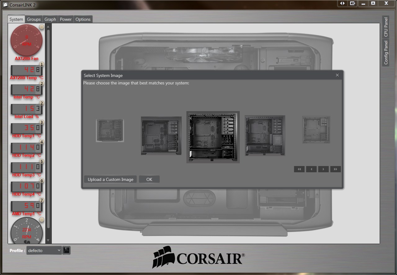 CORSAIR AX1200I. Captura Software Corsair Link 2 v2.0.15 Beta. Sección de «Select System Image»