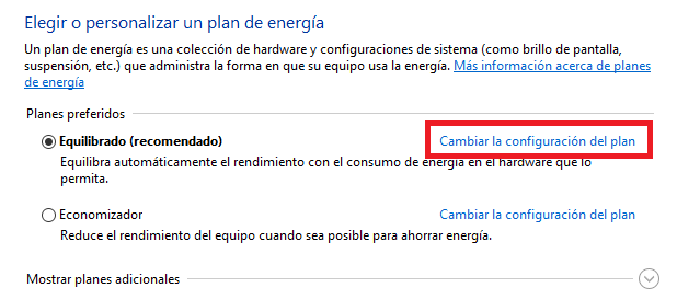 Predeterminadamente, Windows 10 utiliza un plan de uso de energía equilibrado que a veces puede afectar al rendimiento. El plan equilibrado mantiene más baja la velocidad de tu CPU cuando no está en uso, y coloca los componentes claves en sus respectivos modos de ahorro de energía en momentos de baja demanda.