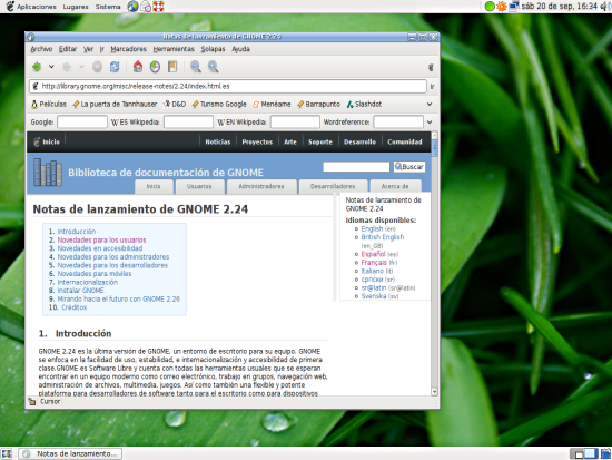 GNOME 2.24 es la última versión del escritorio GNOME. GNOME es libre y de código abierto que proporciona todas las herramientas comunes que los usuarios esperan de un entorno moderno, como el correo electrónico, groupware, navegación web, gestión de archivos, multimedia y juegos. Por otra parte GNOME proporciona una flexible y potente plataforma para desarrolladores de software, tanto de escritorio como de aplicaciones móviles.