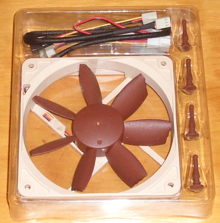 El ventilador y sus accesorios vienen envueltos por un embase de plástico duro transparente, para protegerlo de golpes y para distribuir su contenido y no estar todo suelto. Entre sus accesorios se encuentran los adaptadores Ultra Low Noise (llamado por Noctua U.L.N.A.), el Low Noise (L.N.A.), un adaptador de 3 pines a molex, cuatro tornillos y 4 soportes de goma anti-vibración.