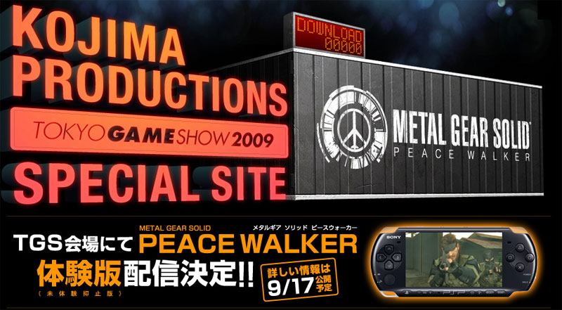 Kojima Productions a anunciado hoy mediante su pagina web que dispondra en su stand de kioskos para el publico en general para la descarga de la demo de Metal Gear Solid: Paece Walker. Este juego, exclusivo para la consola de Sony PSP podra ser descargado al llevar tu consola al evento.