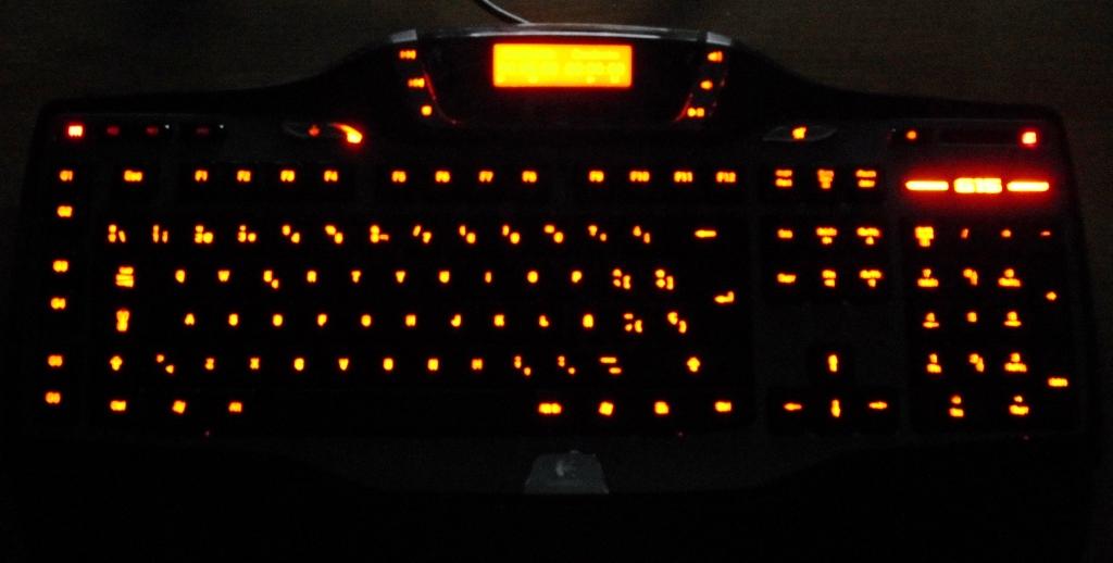 Alrededor de la pantalla LCD trae los controles de volumen para configurar mientras estas jugando. A lo referente a las teclas en general, la sensación táctil es muy buena y ofrecen una buena sensación de escritura, ya sea para juegos o para uso general. El la iluminación de los caracteres es de agradecer, sobre todo cuando se está jugando de noche. Con la iluminación, puedes ver perfectamente todas las teclas sin problemas (incluso las dos o tres teclas que he nombrado anteriormente que la parte de arriba no se iluminaba).