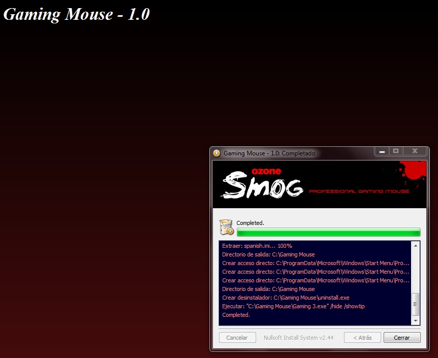 La instalación del programa es simple y rápida, únicamente tiene tres pasos, la selección del idioma, elegir qué accesos directos deseas, y escoger el directorio dónde se instalará el software. Una vez completada la instalación, saldrá un icono en la bandeja del sistema, desde el cual se podrá acceder a los controles de configuración del ratón.