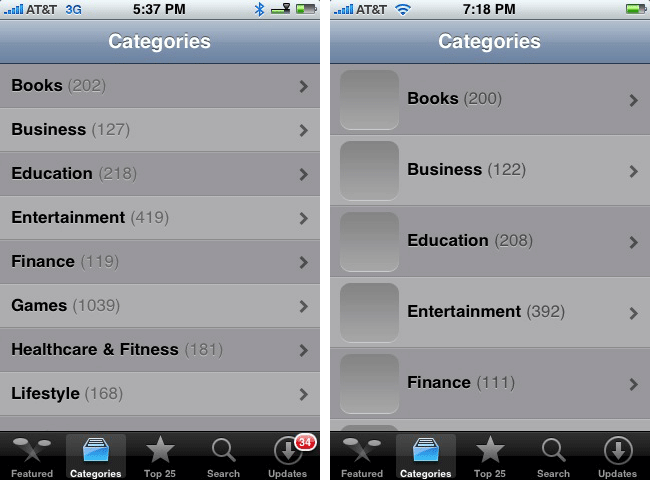 Apariencia: Con el nuevo firmware, los usuarios verán un diseño más limpio, con los iconos de las categorías más grandes, mayor espacio entre la lista de temas y nuevo diseño de una página que prorporciona una descripción de una aplicación.