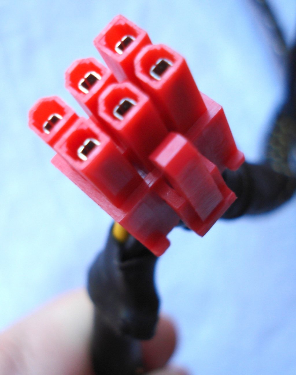 Cableado 1. Detalle conector PCIe1 de 6 pines I. Vemos que los conectores son plateados, por tanto no bañados en oro.