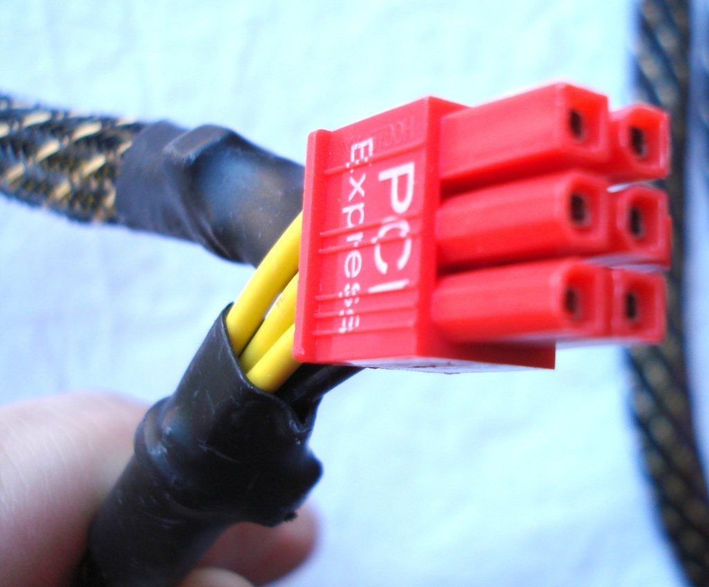 Cableado 1. Detalle conector PCIe1 de 6 pines III. Empezamos a destacar lo bien protegidos y enfundados que están todos los cables.