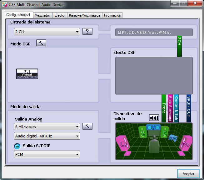 Aquí podemos elegir canal de audio (uno diferente para películas, juegos, música…), efectos, sonido 7.1 virtual…