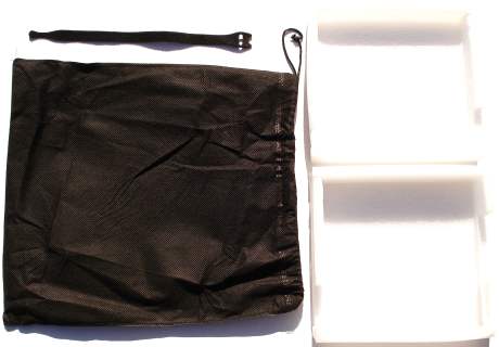 Pues lo que acabáis de leer; tenemos una simple funda de color negro con cierre a través de un cordón. Una práctica cinta de atado negra con velcro (podrían haber puesto otro filamento forrado, pero esto está muchísimo mejor) Y las ya nombradas protecciones antigolpes.