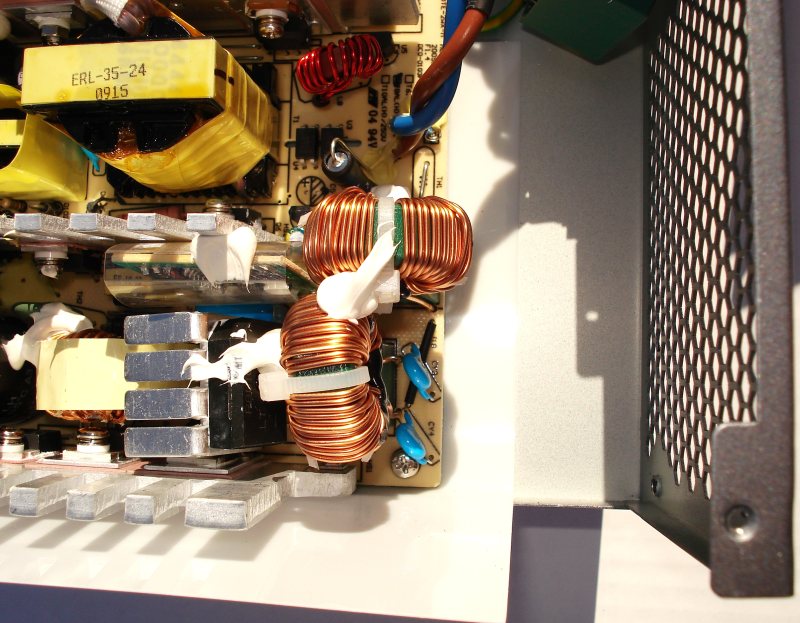 En esta toma, podéis ver el detalle de algunas bobinas, así como algunos disipadores, entre otra circutería.