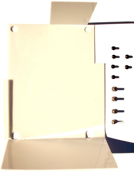 Este es el plastico aislante de la electricidad, para evitar cortocircuitos que se situa en la parte inferior de la placa soldada vista anteriormente. A la derecha vemos todos los tornillos necesarios para desarmar por completo toda la fuente, hasta 10 tornillos.