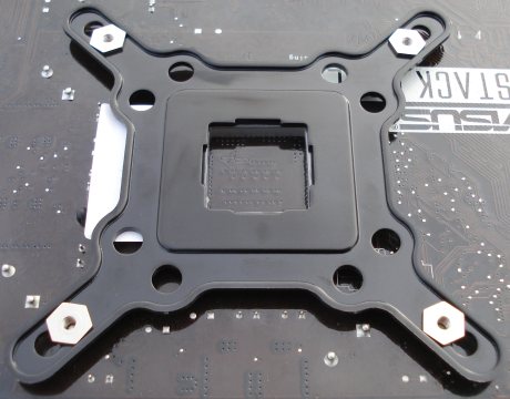 Primero se coloca la parte trasera, con 4 tornillos con cabeza hexagonal y una pieza de plástico de alta resistencia a compresión que se pega con adhesivo al metal en su base cuadrada central. Esto hará aumentar la resistencia del conjunto una vez montado, para no forzar en exceso la Placa Base, ni su Socket. Su diseño permite acoplarse a los 3 diferentes formatos de Socket, que varían ligeramente según distancias entre diagonales de las 4 perforaciones.