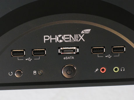 Ahora voy a meterme más profundamente en cada una de las mejores características de esta torre. Como podréis ver en la parte frontal superior encontramos un pequeño panel en el que tenemos el botón de encendido, el de apagado, 4 puertos USB, los jacks para las entradas de audio y micrófono y un puerto e-sata para conectar nuestros discos duros externos. Lo más extraño de este panel es que ni en la página oficial vemos una solo imagen de este, y yo no sabía que estaba ahí hasta que vi la carcasa.