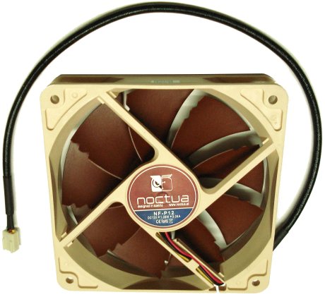 Este es el famoso ventilador de NOCTUA NF-P12 Premium. Su acabado es exquisito. Con sus colores salmón en el cuerpo y marrón en las aspas, hacen distintivo a este producto. El cuerpo esta vez es común a otras marcas, en cambio sus hasta 9 aspas presumen de un diseño aerodinámico bien estudiado. Se trata del acabado Vortex-Control Notches, que dota a las aspas de mejor aerodinámica, con aumento del rendimiento a menores vibraciones y menor ruido.