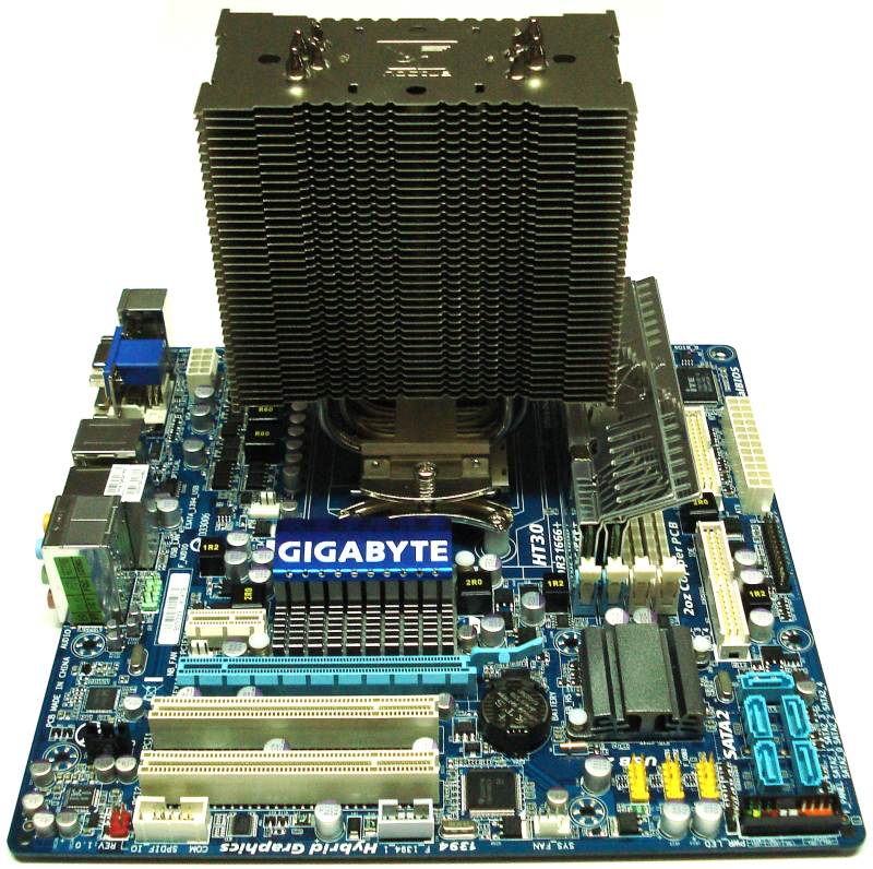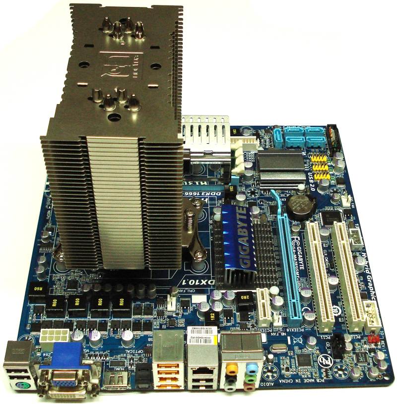 Este es el aspecto del bulto de este disipador respecto de una placa mini-ATX. Parece un bonito edificio de 36 pisos. Veamos más vistas.