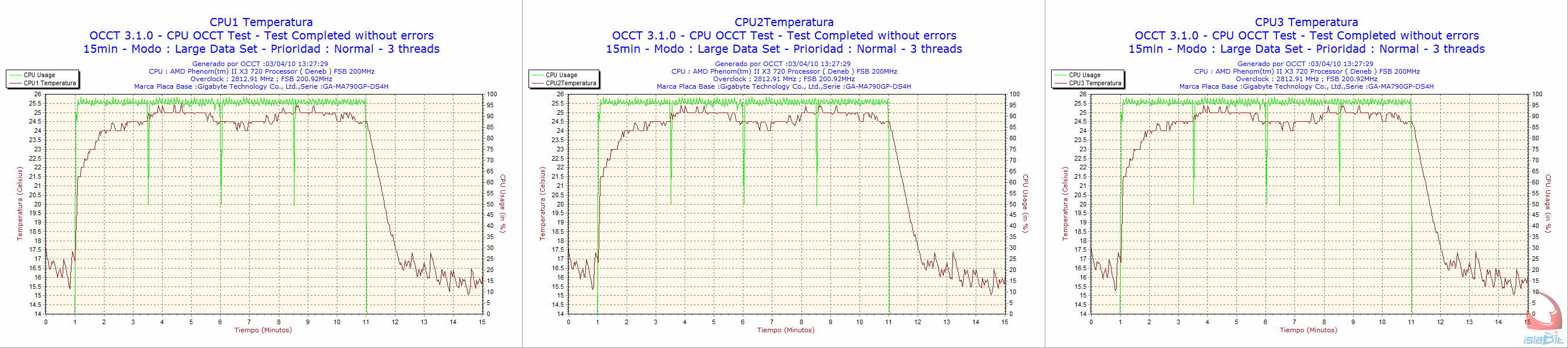 Gráfico de Temperaturas a plena carga. Núcleos 1, 2 y 3