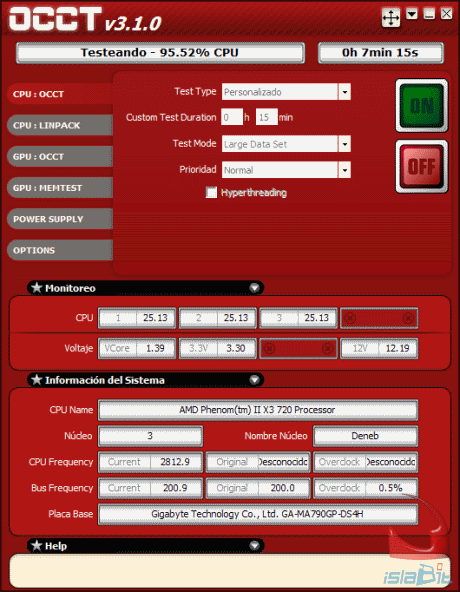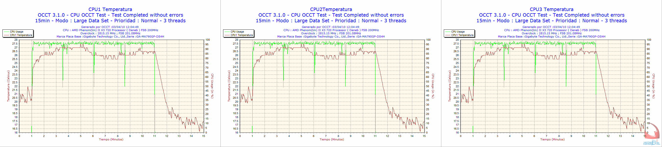 La temperatura ambiente no ha superado los 20ºC. Vamos a ver a qué temperatura aumentan los núcleos con el OCCT a plena carga.
