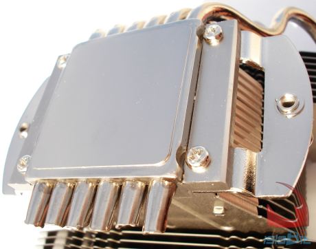 No vamos a distraernos demasiado en el acabado o tratamiento de su base, ya que es la misma que NOCTUA va llevando hasta la fecha en todos sus disipadores y ya ha sido explicada en nuestro análisis del NH-D14. En resumen, no luce un pulido perfecto, sino que se trata con una superficie ligeramente ondulada para conseguir mayor área de trabajo con el compuesto térmico NT-H1.