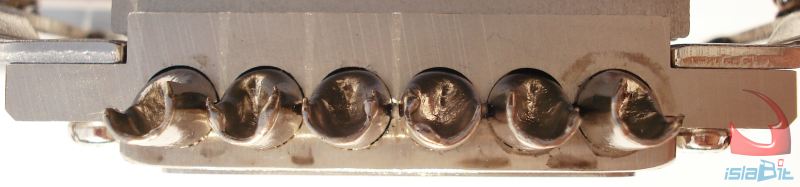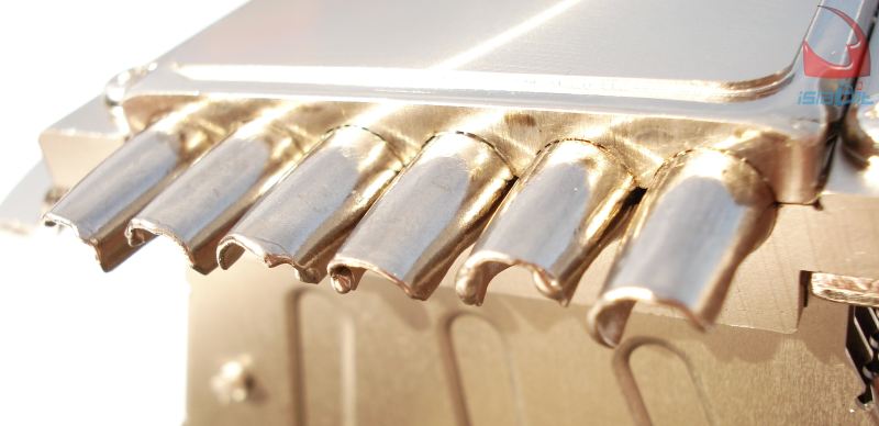 Disipador NOCTUA NH-C12P SE14. Detalle unión Heatpipes-Aletas, entrantes. Soldaduras I