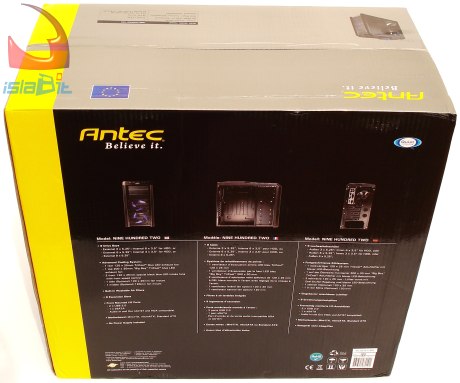 Estas son las distintas vistas del exterior de la caja de cartón que protege al producto. ANTEC cubre muy bien todas las caras de información sobre el producto, desde buenas fotografías medianas y casi a tamaño real, hasta informarnos de sus características y especificaciones ya citadas en varios idiomas, entre ellos el español.