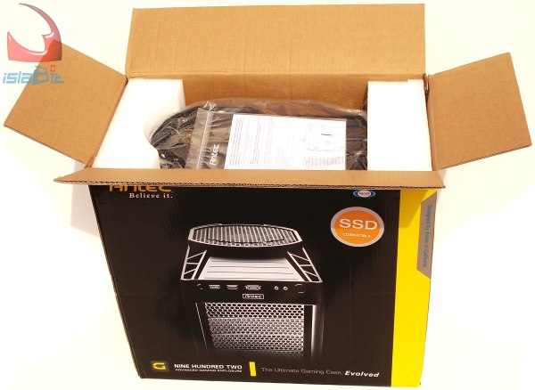Al sacar la NINE HUNDRED TWO de su interior, nos topamos con lo típico en prácticamente todas las cajas del mercado. Dos esponjas que atrapan la semitorre, esta vez por la frontal y trasera dejando al descubierto los laterales y superior e inferior. Es la forma más idónea de proteger este tipo de productos, su frontal siempre suele ser la pieza más débil. Además está bordeada por una bolsa de plástico transparente para evitar el polvo y protegerla aún más, en caso de tener la caja de cartón abierta.