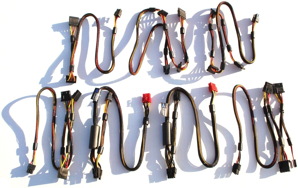 Repetimos la lista anterior para los cables modulares: (viendo los cables de la fotografía superior, a partir de arriba-izquierda)