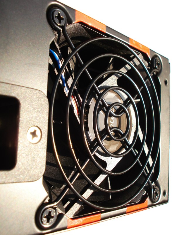 A veces nos preguntamos por qué los fabricantes emplean este tipo de acabados en sus productos. La verdad es que esta vez les ha salido redondo. Quizá, si se hubiera instalado un ventilador de 14cm, cambiando todo su diseño original, no tendría este aspecto tan a lo «Race». Es lógico que por la vista también entran las cosas, y que está destinada a satisfacer a los entusiastas que les encanta utilizar su ordenador como algo que sirve para competir contra sus compañeros/amigos. A todos les gusta «tenerla grande»; es evidente que nos referimos a la fuente de nuestro equipo.