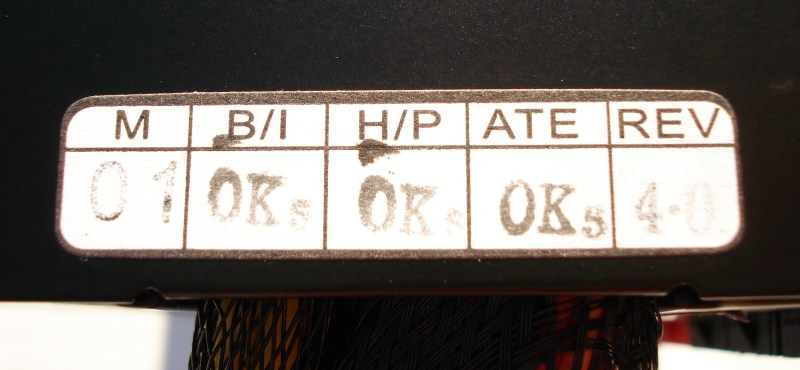 Más detalles… La fuente ha sufrido unos controles de revisión antes de su venta. Según esta pegatina, tenemos una referencia, tres controles y el número de la revisión, situada ya en la versión 4.0. Por supuesto, todas estas revisiones, de seguridad, funcionamiento, etc. han sido, como no, superadas. De lo contrario se debería mandar la unidad a una nueva revisión para su reparación, o simplemente ser reciclada.