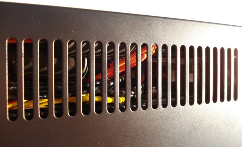 Esta segunda rejilla de ventilación para la introducción de aire. Está situada en todo el lateral superior de la fuente. El grosor de la perforación al igual que la anterior es de aproximadamente 3mm.