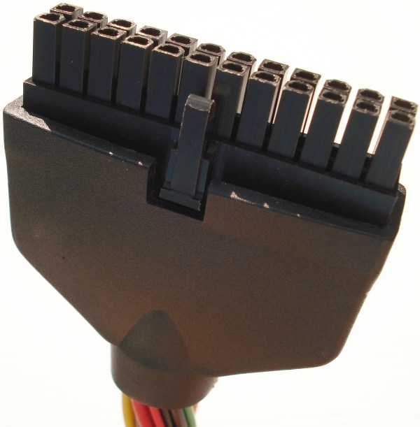 Este conector viene bien enfundado para proteger los 24 cables en sus extremos. Es fácil de coger pero algo aparatoso de desconectar de la placa base, ya que el clip de anclaje es algo difícil de alcanzar con los dedos. Está claro que prima la seguridad. Con un poco de gracia podremos desconectarlo sin problemas.