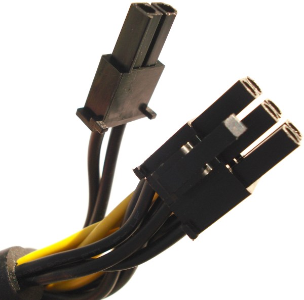 - Cable con conectores PCI-E 6 + 2 pines / PCI-E 6 pines (longitud de cable de 55+15 cm.)*