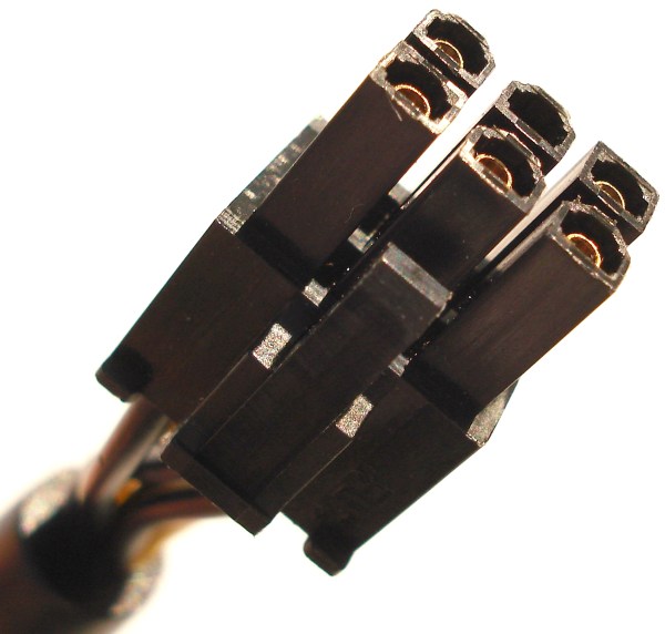 Los demás conectores suponemos que ya son conocidos por todos, y solo nos detenemos en lo que consideramos algo «novedoso», para realizar una breve explicación. Todos los cables, hasta ahora son de calidad, y se fijan perfectamente a cualquier dispositivo compatible. Todos tienen su clip de anclaje, a excepción de los conectores para periféricos, y floppy, que a continuación veremos. Los molex SATA disponen de un pequeño clip de anclaje interno, propio del diseño de dicho molex.