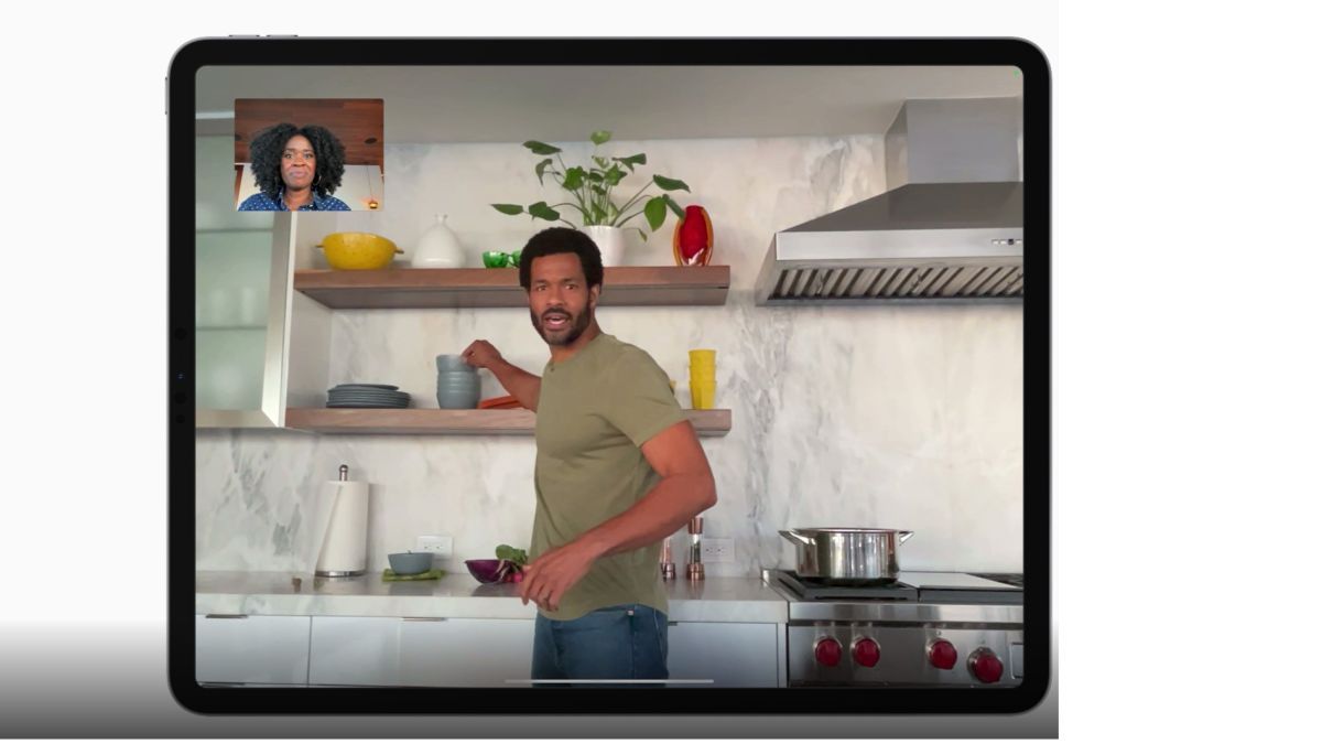 Introducido en el mercado por primera vez en el iPad Pro M1 y sus hermanos menores, Center Stage es básicamente un mecanismo de asistencia a la cámara, que ajusta de modo automático el marco para que éste pueda seguir los movimientos del sujeto que aparece en la videollamada, ampliando su margen original de desplazamientos.