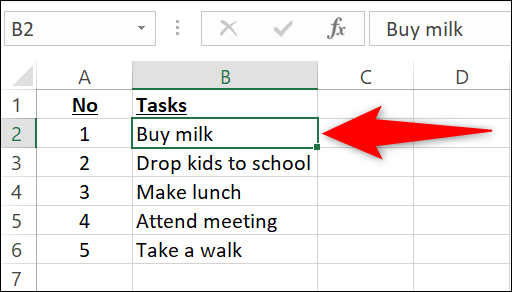 Existe otra opción para poder aplicar el tachado de texto en las celdas. Para esto vamos a abrir la hoja de cálculo en Microsoft Excel. A continuación, tendremos que dar clic en la celda donde se encuentra el texto que deseamos tachar.