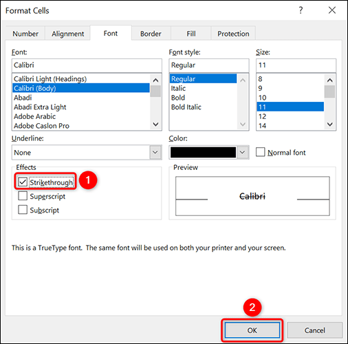 Inmediatamente, se abre una nueva ventana llamada “Formato de celdas”. Aquí tendremos que ir a la sección “Efectos” y habilitar “Tachado”. Luego le damos clic en “Aceptar” para aplicar los cambios, aunque desde esta ventana podemos darle formato de muchas maneras interesantes.