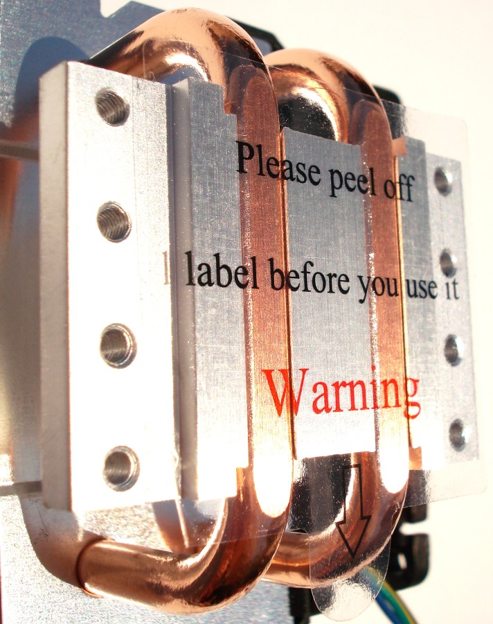 El fabricante no se ha calentado mucho en la fabricación de las aletas, todas son exactamente iguales incluyendo el logotipo impreso en el metal. Los heatpipes tocarán directamente a la superficie de la CPU a través de la pasta térmica. Su base está notablemente trabajada y pulida.