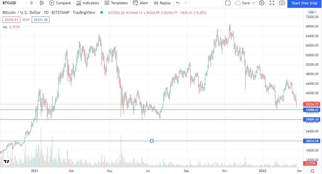 Los activos de riesgo siguen lastrados por el conflicto y las tensiones entre Rusia y Ucrania. Esto incluye Bitcoin y las criptomonedas que actualmente todavía se consideran una clase de activo de alto riesgo”, dijo el vicepresidente de desarrollo de Luno, Vijay Ayyar.