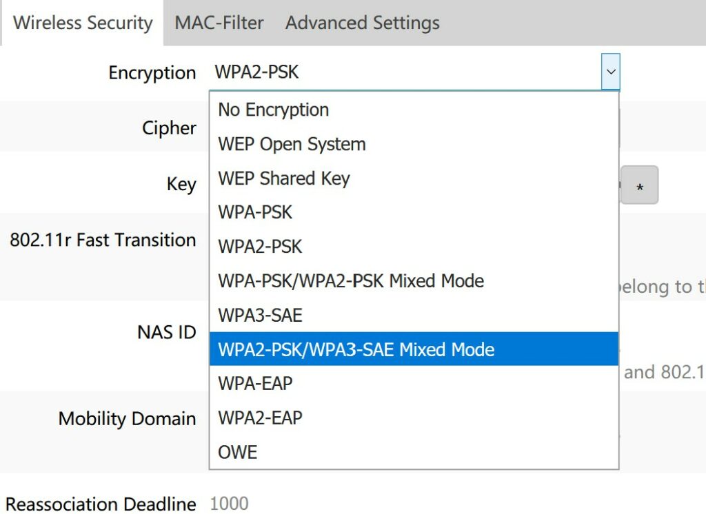 Muchos enrutadores WiFi que admiten WPA3 también admiten un modo de transición WPA3/WPA2 con conexiones desde dispositivos que usan encriptación WPA2 o WPA3, versátiles al ser compatible con ambas tecnologías.