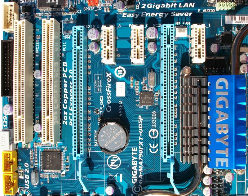 GIGABYTE GA-MA790FXT-UD5P. Zona Ranuras PCIe y PCI