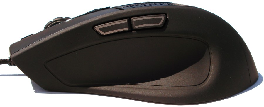 Luego tenemos la zona izquierda, donde apoyará el nacimiento del dedo pulgar (el más grueso). Es una zona bastante cómoda e impide que nos pellizquemos con el pulgar entre el ratón y la alfombrilla. Esto a veces sucede según qué ratones.