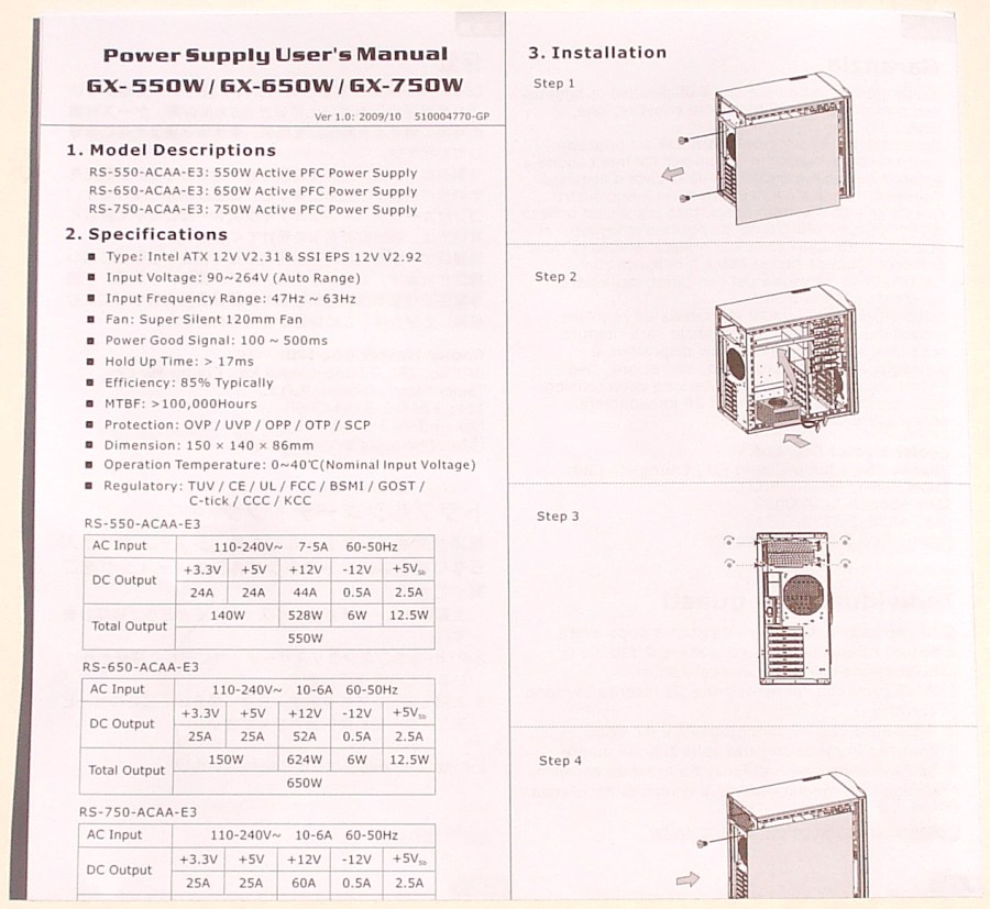 El manual de instrucciones sirve para los modelos de 550, 650 y 750W. Uno de los mejores manuales básicos de tipo técnicos que hemos visto, indicándonos cualquier detalle de las conexiones, de las tensiones, etc. y en multitud de idiomas.